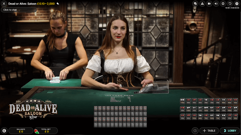There may not be a new Sheriff in town, but there’s certainly a new live casino game in the Evolution catalogue. Set in an old Saloon bar, the dealers are surrounded by all kinds of paraphernalia befitting a Western movie. From the piano in the corner to the cowboy hat on the fireplace, it feels as though Butch Cassidy might appear at any moment.